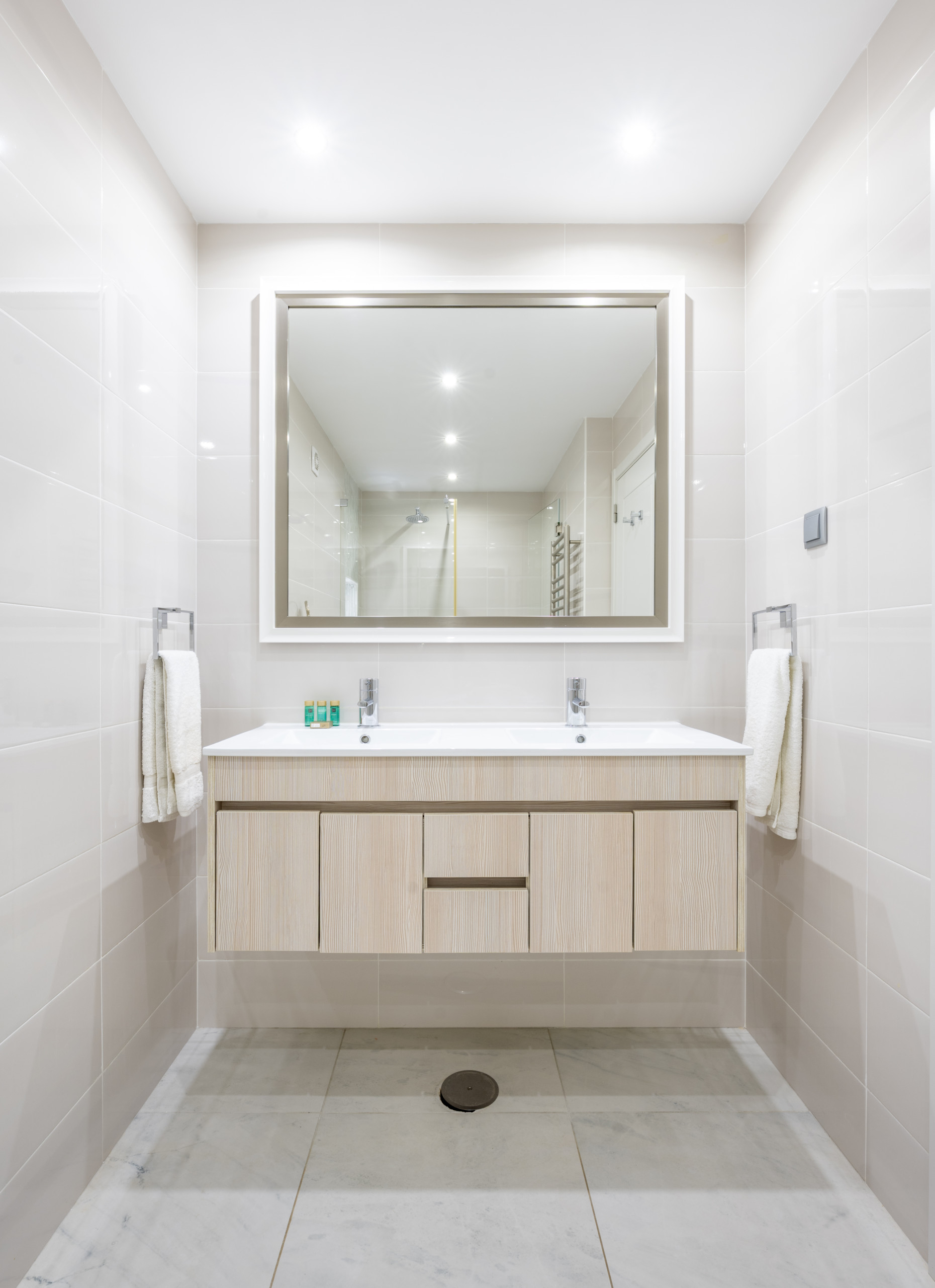 En entrant dans l'appartement, vous trouverez à gauche une suite accueillante, avec un lit double et une salle de bain avec douche, idéale pour se détendre en toute intimité. En montant les escaliers, vous pourrez trouver une deuxième salle de bain avec baignoire. Au bout du couloir, s'ouvre un salon lumineux intégré à la salle à manger dans un concept ouvert, parfait pour des moments de convivialité et de loisirs.