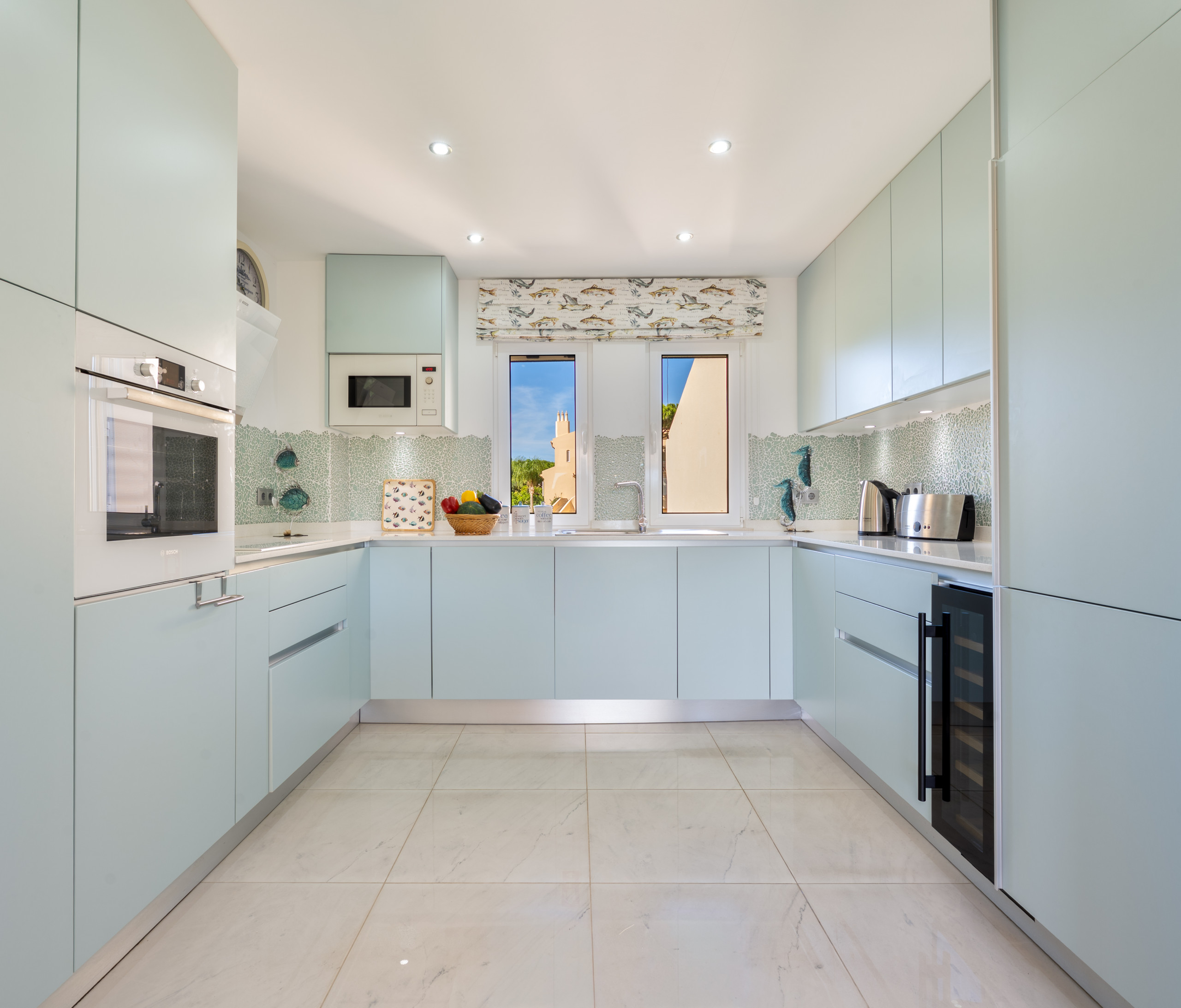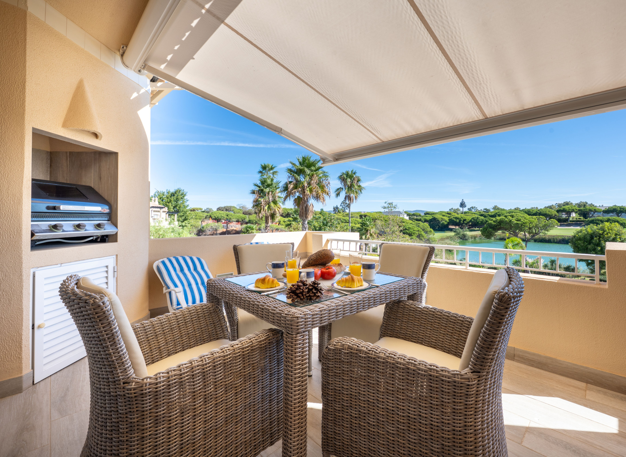A cozinha moderna e totalmente equipada conecta-se diretamente com a sala de estar, tornando o espaço funcional e acolhedor. Da salade estar terá acesso a uma varanda espaçosa com vistas deslumbrantes sobre o lago e a piscina do condomínio, ideal para desfrutar de refeições ao ar livre ou simplesmente relaxar ao sol. A varanda está equipada com mesa de refeições e barbecue, proporcionando o cenário perfeito para jantares memoráveis com família ou amigos.