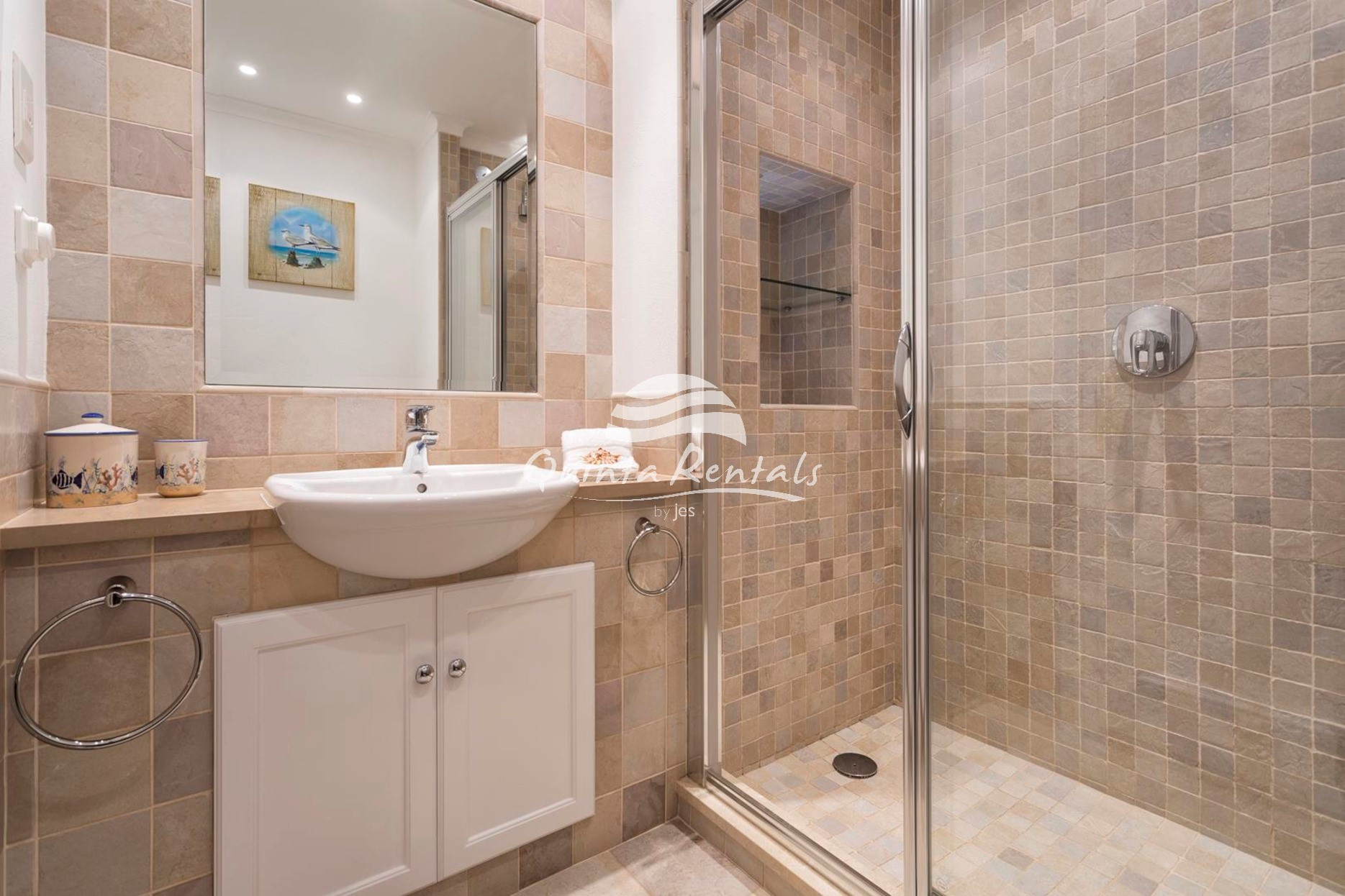 Este apartamento de rés-do-chão, Chervil, tem um terraço com vista para os jardins comunitários bem cuidados e o 9º buraco do Campo de Golfe de São Lourenço. Recentemente renovado, o Apartamento Chervil possui dois quartos - uma grande suite principal com vista para os jardins e um quarto com duas camas. O apartamento dispõe de duas casas de banho, uma equipada com um chuveiro e a outra com uma banheira.