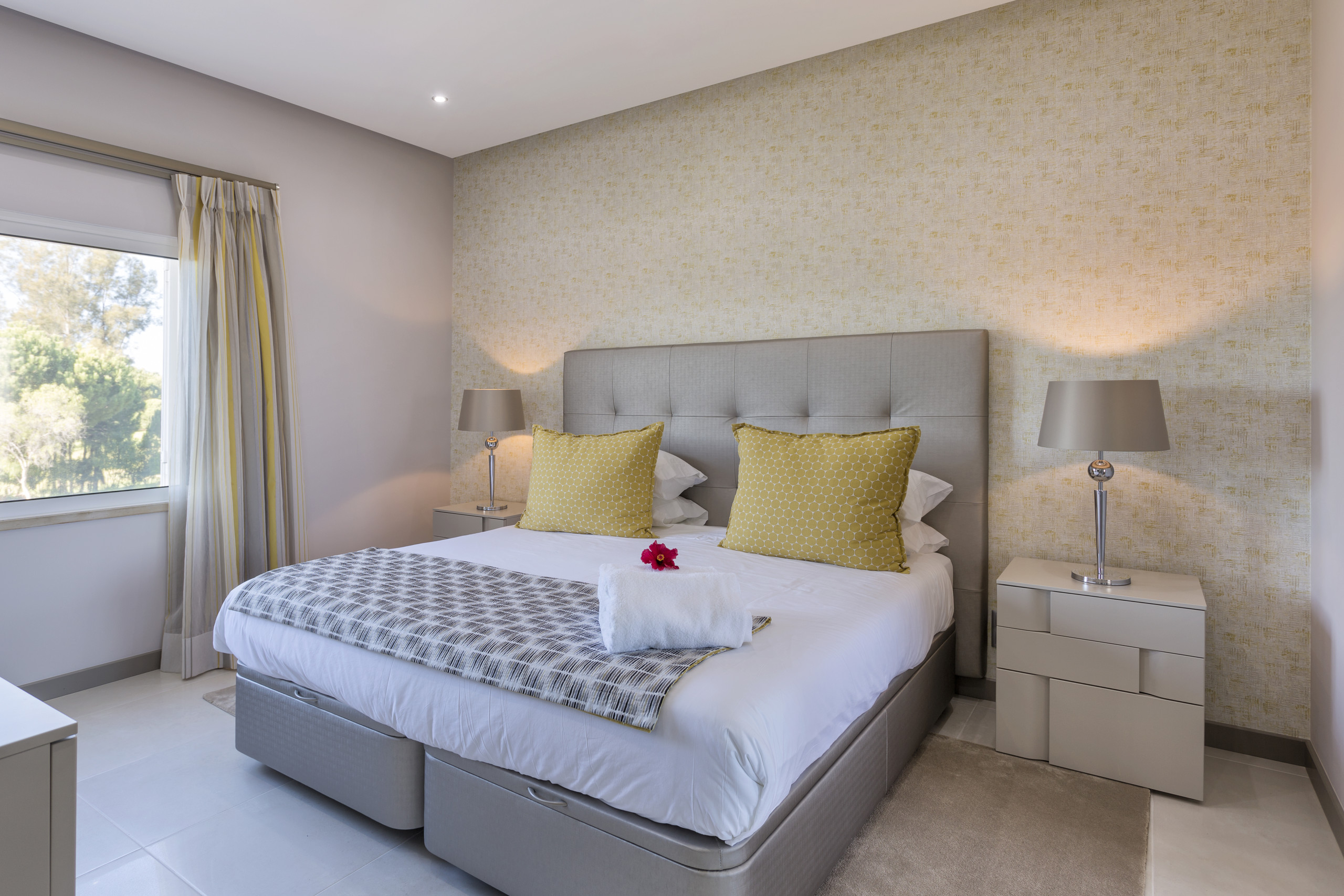 O apartamento tem uma charmosa vista sobre os verdejantes jardins comuns, que se fundem com o campo de golfe de São Lourenço.