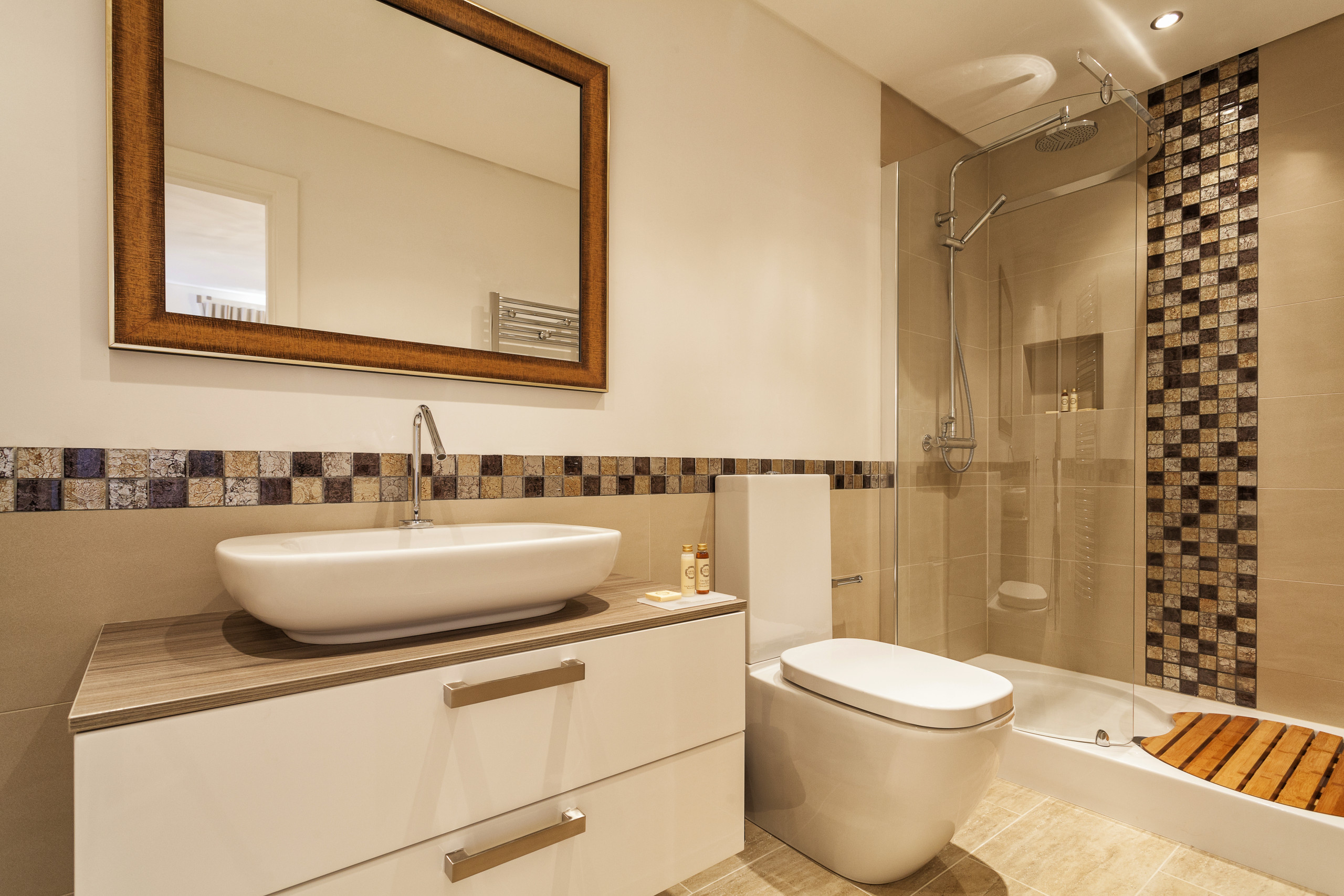 Na entrada, encontra um quarto king-size redecorado com um chuveiro walk-in em suite.