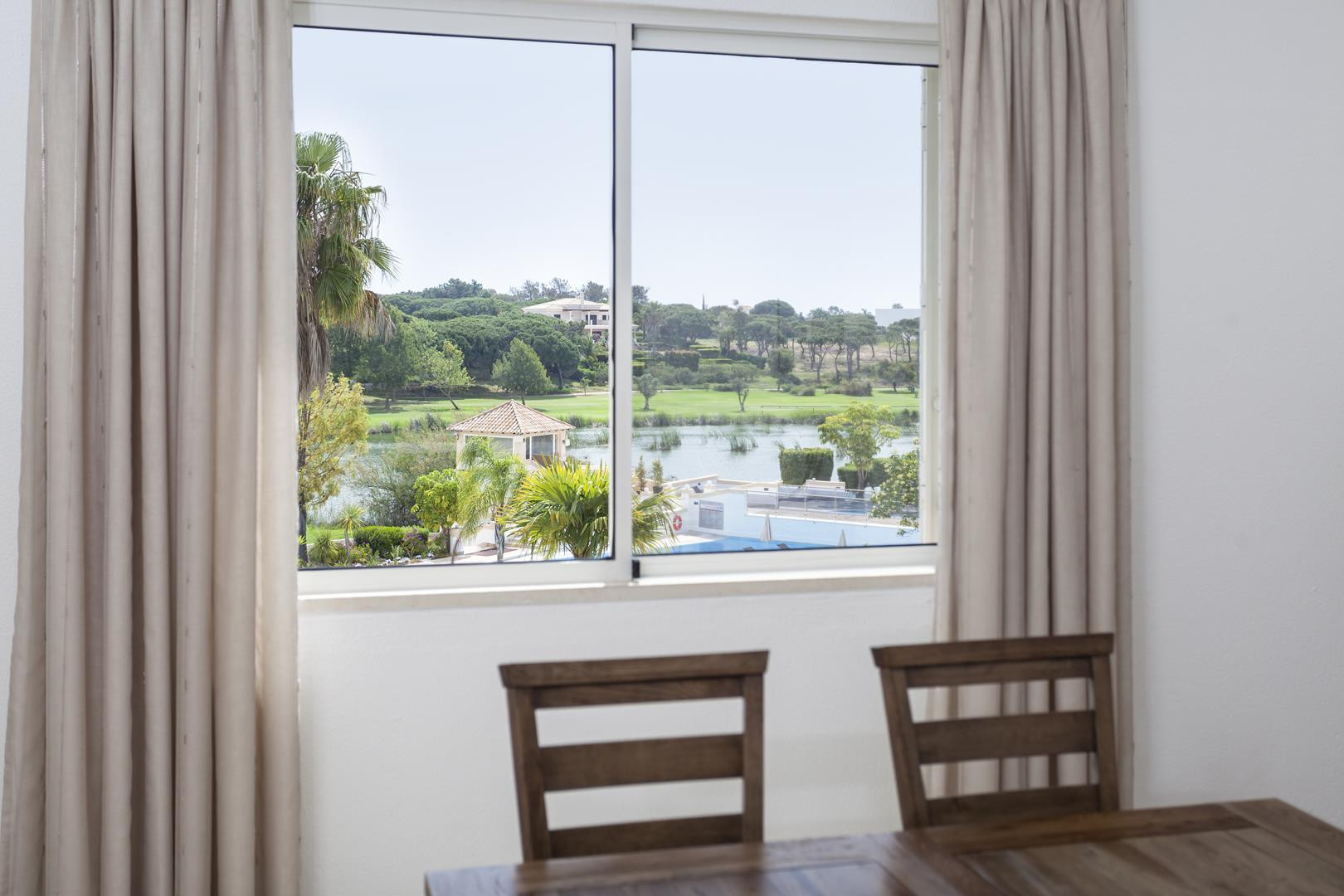 O apartamento tem uma espetacular vista panorâmica sobre a zona do lago e campo de golfe.
