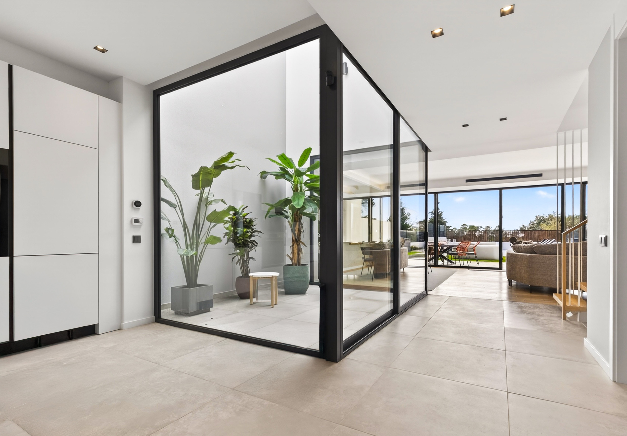 De construção recente, a propriedade apresenta um design moderno e acabamentos de alta qualidade. À entrada encontra-se a cozinha em open space, equipada com electrodomésticos topo de gama e utensílios completos, incluindo uma pequena zona de refeições. Junto à cozinha, um encantador jardim de inverno oferece luz natural e um espaço acolhedor. Também nesta área há uma casa de banho com duche, prática para hóspedes e visitantes.
