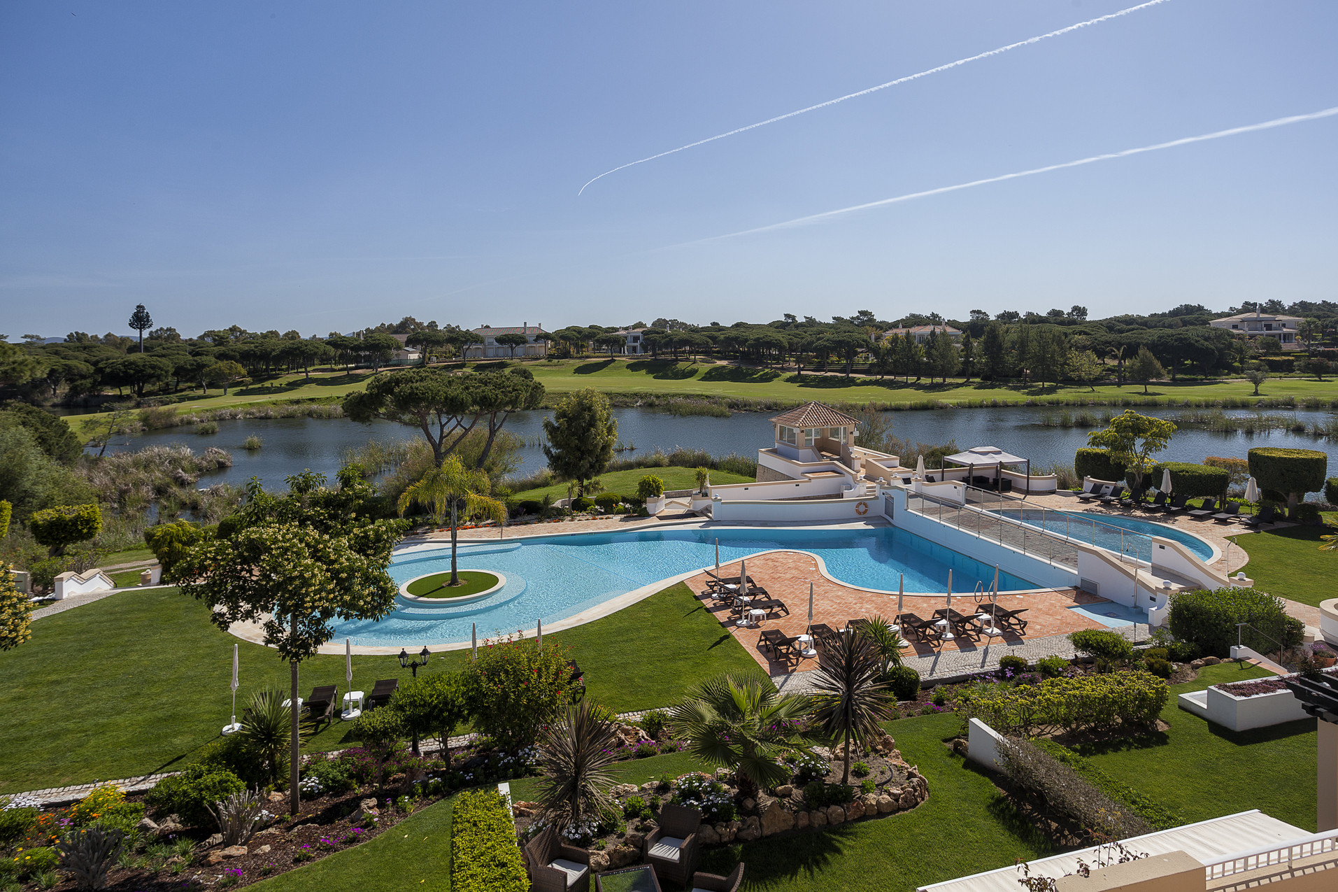 The apartment has a charming view over the verdant common gardens, which merge with the São Lourenço golf course.